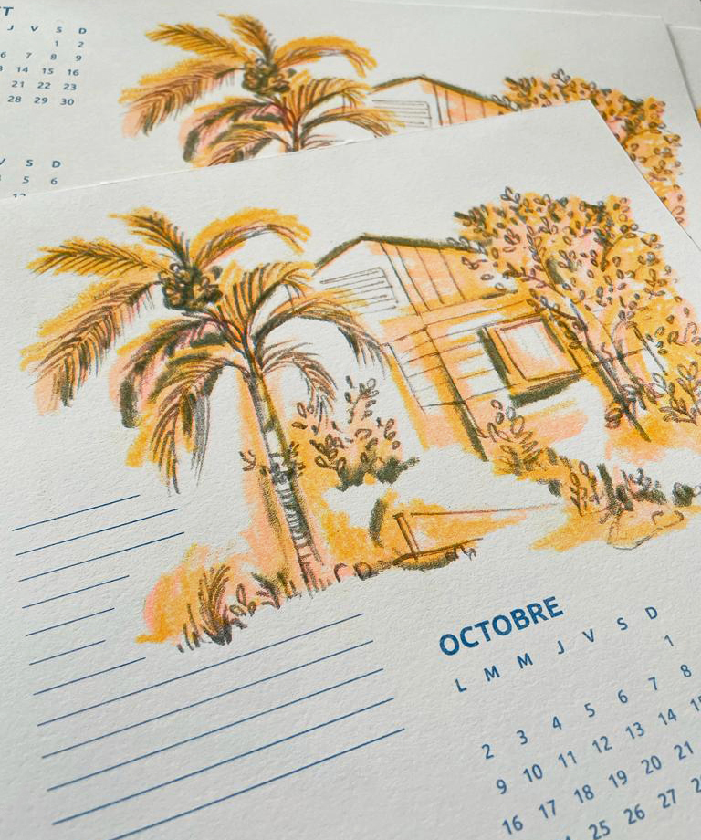 Extrait du calendrier 2023 - Illustrations du Costa Rica - imprimé en risographie - 29,7 x 42 cm - Disponible sur Etsy